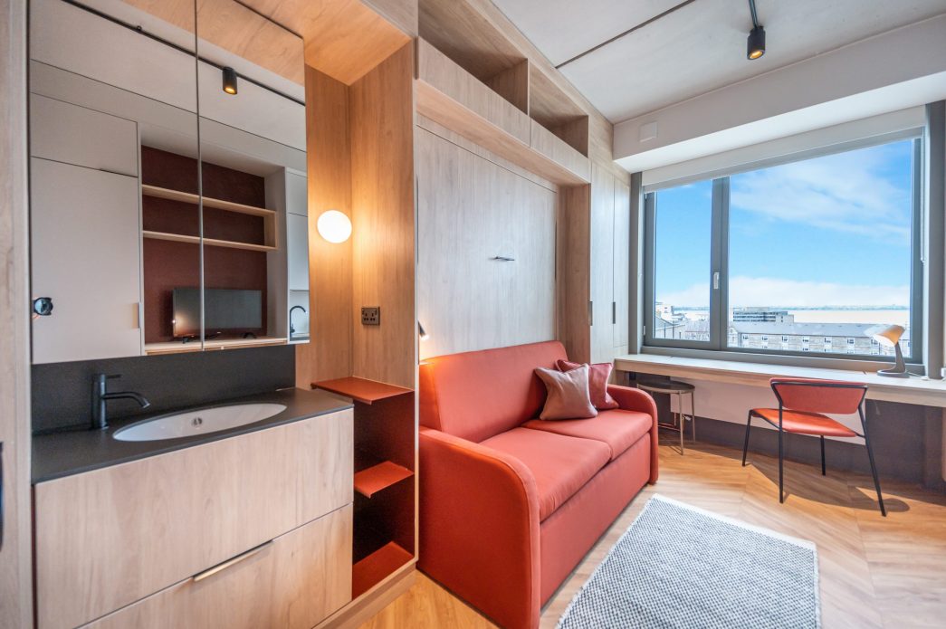 Includes a double bed and smart TV. Kitchenette comes with utensils, hob & fridge. Full en-suite, WFH desk, ample storage, valuables safe.
